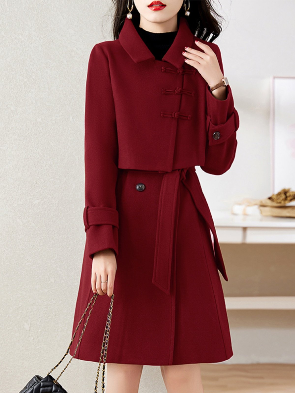 女士高端双面毛呢两件套装裙子秋冬新款羊绒大衣外套