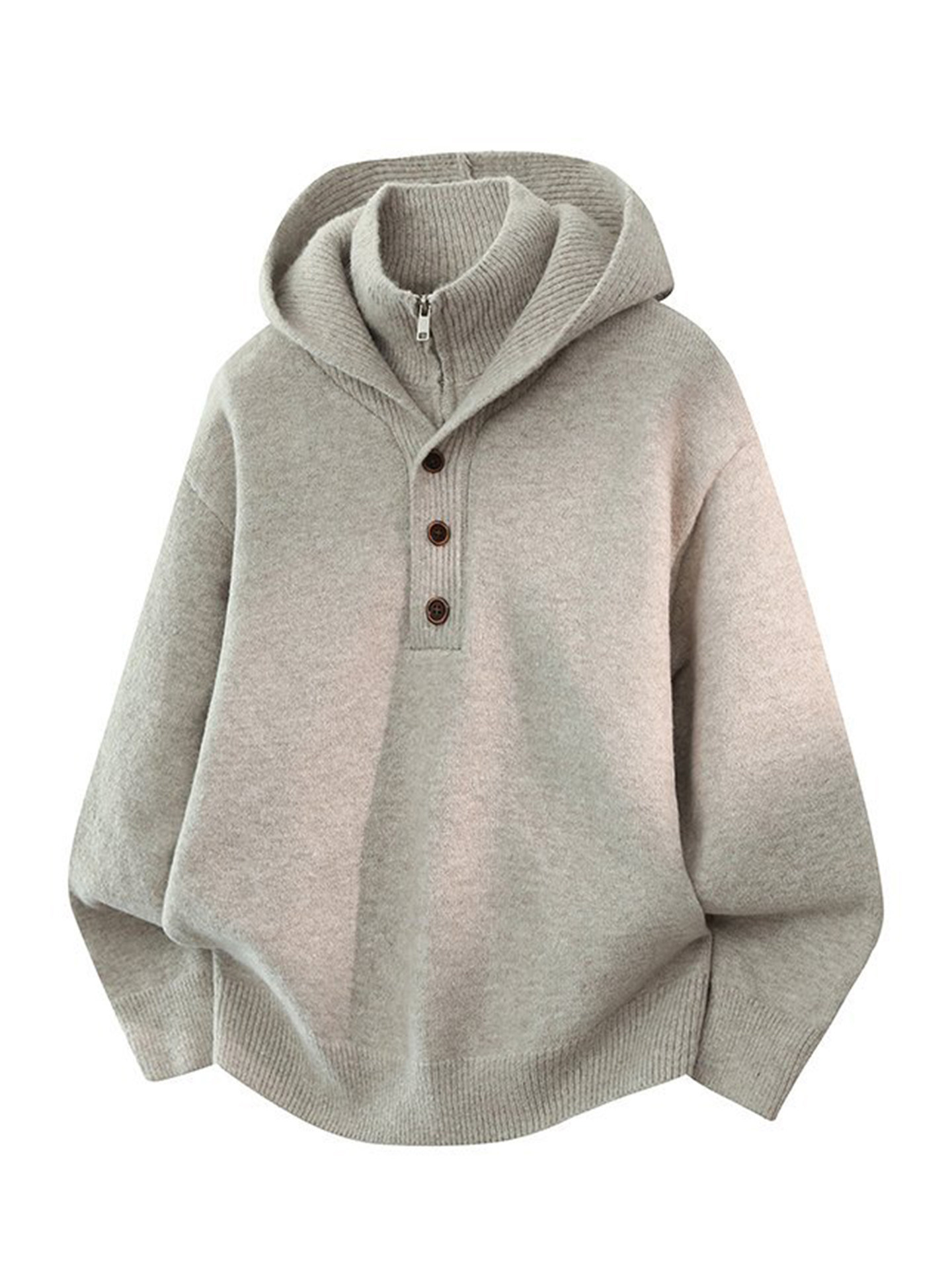 假两件带帽毛衣男秋冬款半拉链立领针织衫外套男加厚保暖外穿线衣