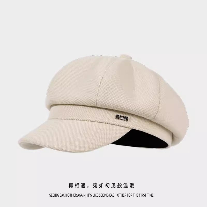 新款贝雷帽女秋冬显脸小鸭舌八角帽大头围法式复古黑色报童帽子潮