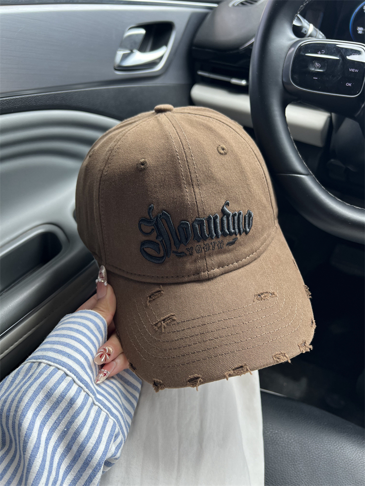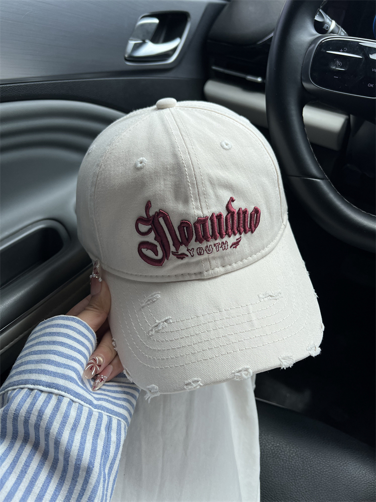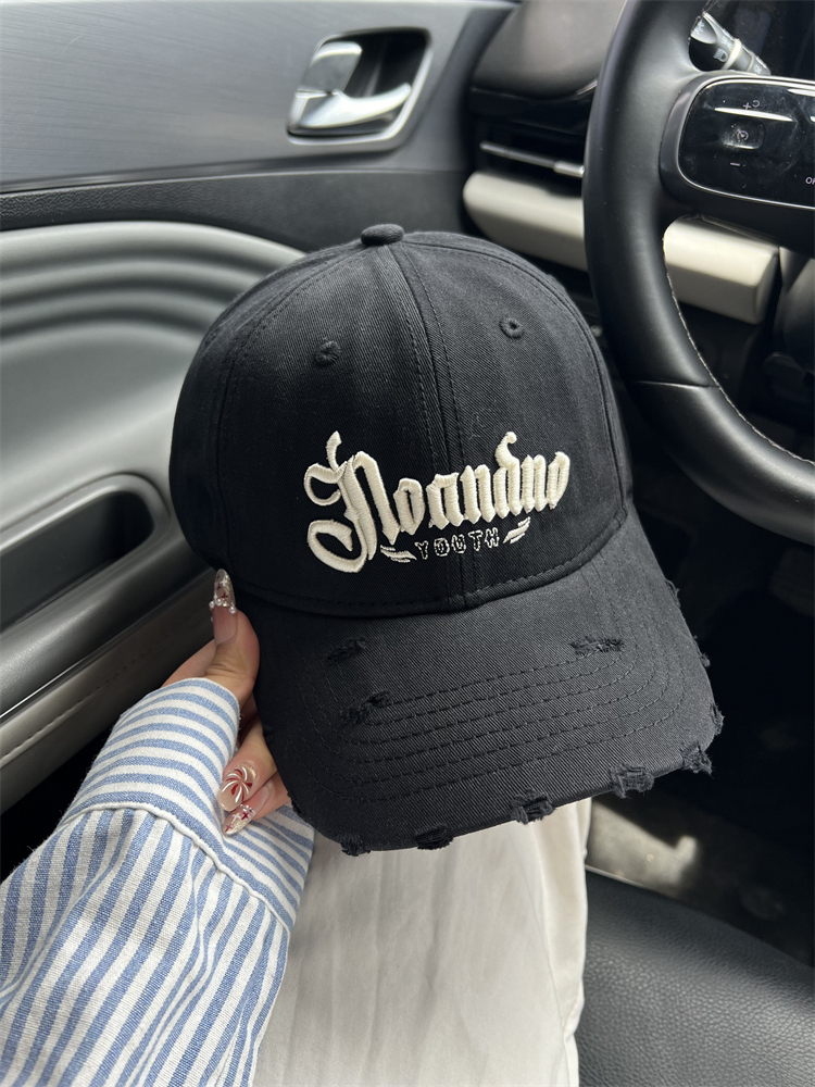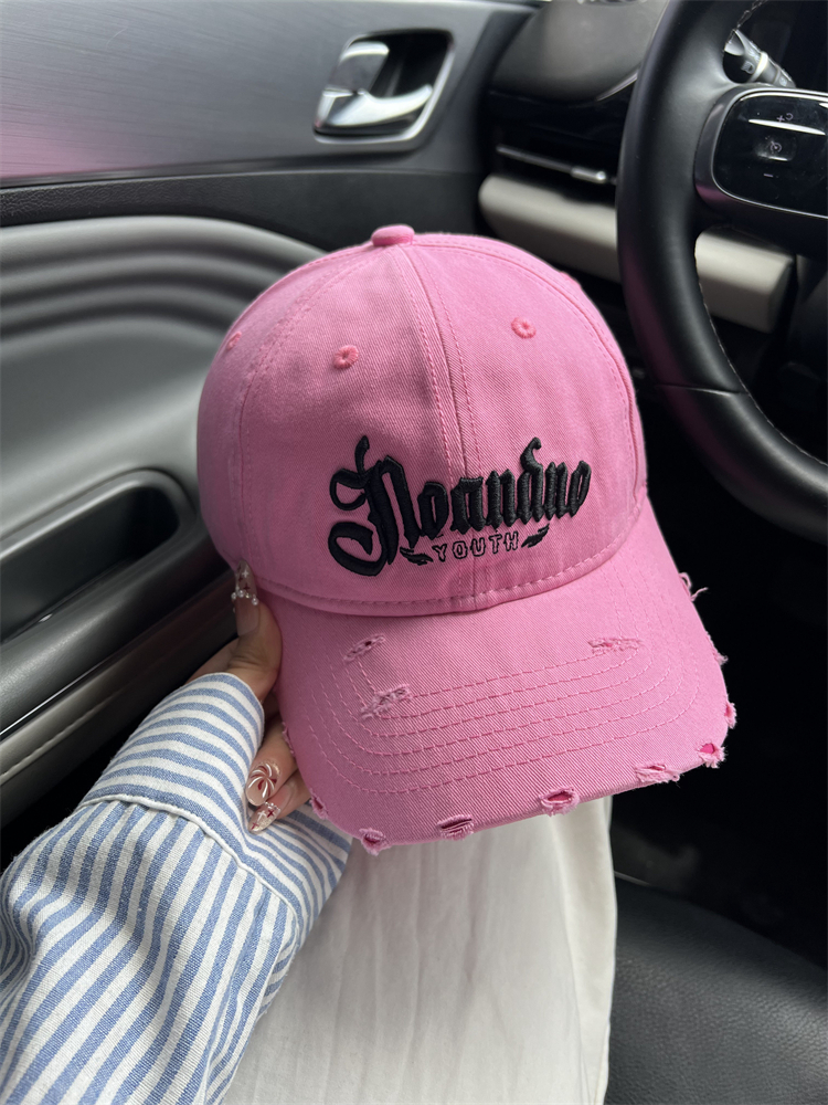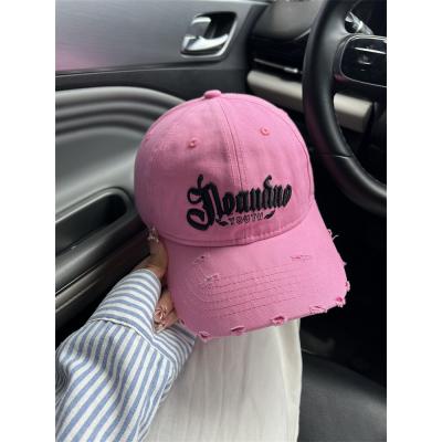 韩版甜酷鸭舌帽女个性新款潮牌宽帽檐软顶粉色帽子破洞刺绣棒球帽