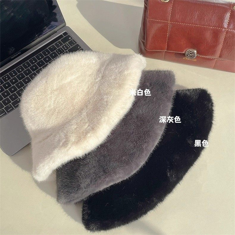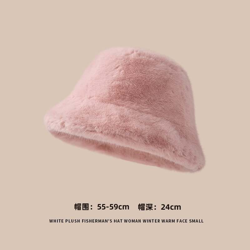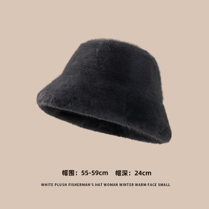 帽子女款2025新款白色毛绒秋冬季保暖可爱加厚显脸小仿水貂渔...