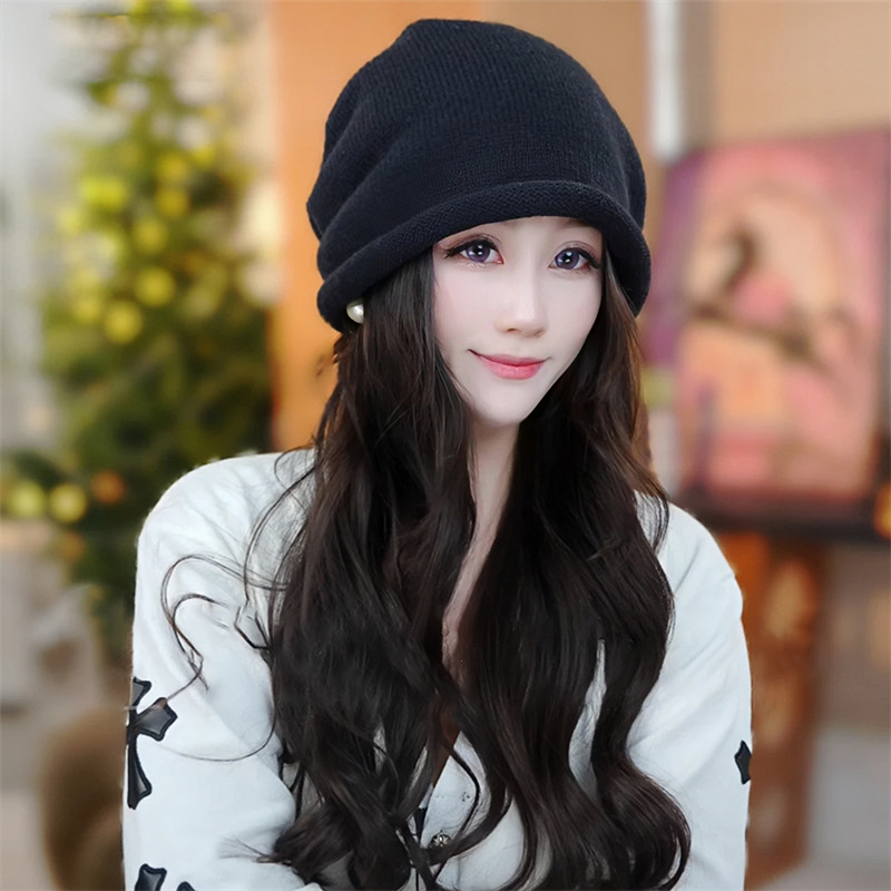 2025秋冬新款抽绳堆堆帽保暖护耳卷边针织帽百搭时尚大头围显...
