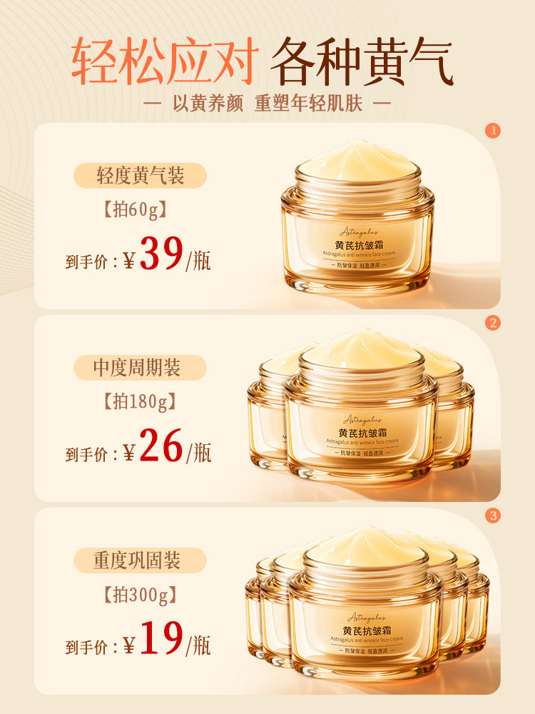 黄芪面霜去黄提亮保湿滋润补水抗皱紧致抗衰老国货60g